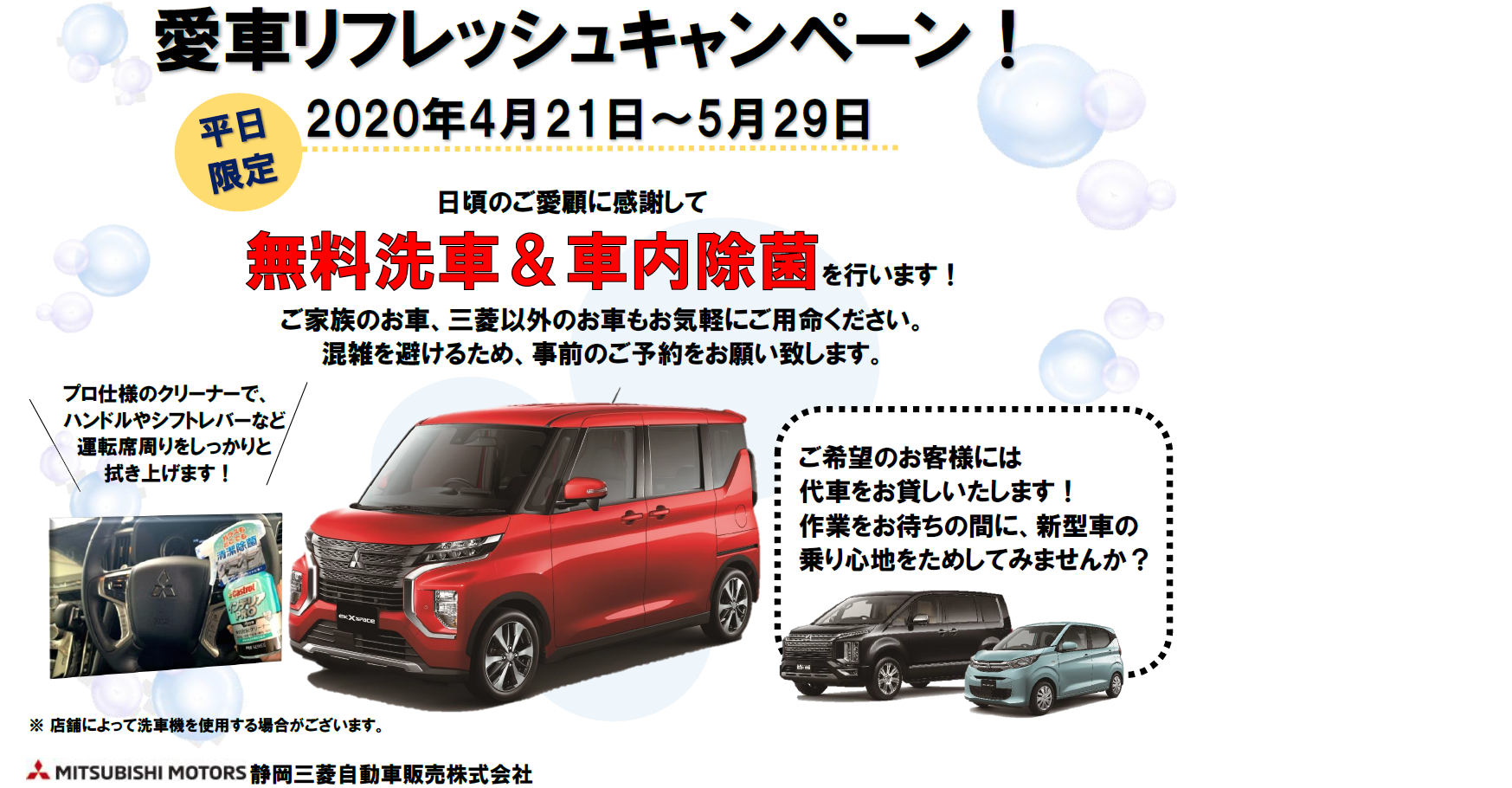 日頃のご愛顧に感謝して無料洗車&車内除菌を行う『愛車リフレッシュキャンペーン』を実施いたします。